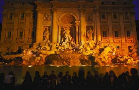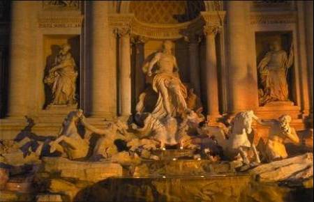 Jährlich werden Münzen im Wert von ca. 30.000 DM in den Brunnen geworfen. Das Geld erhält das Rote Kreuz, welches extra einen Angestellten mit dem Einsammeln und Zählen beschäftigt. Zwei Hilfskräfte überwachen ihn dabei. In der Neuzeit wurde der Brunnen durch Anita Ekbergs Bad für Fellinis Film "La Dolce Vita" berühmt. |